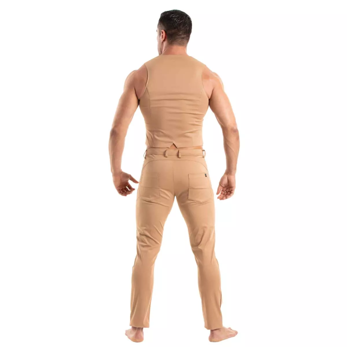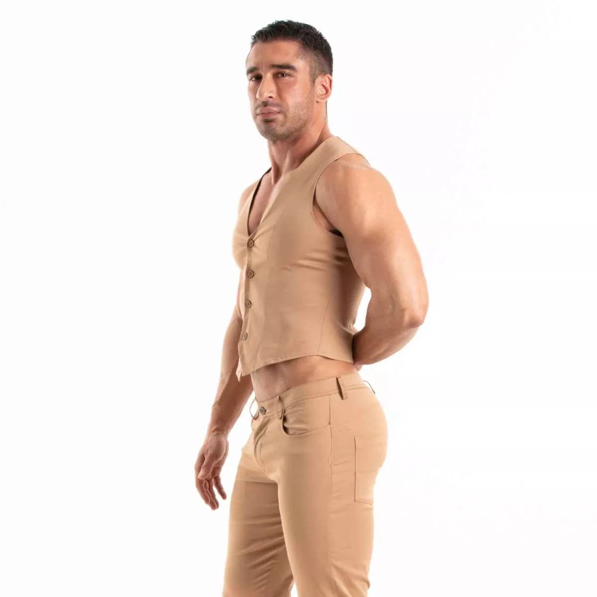 “The men's chino vest is a must-have for any modern wardrobe. Its stretch fabric offers absolute comfort, while its slim fit enhances any body type. It pairs effortlessly with a men's tank top or a sleeveless bamboo hoodie. A versatile and stylish piece.”