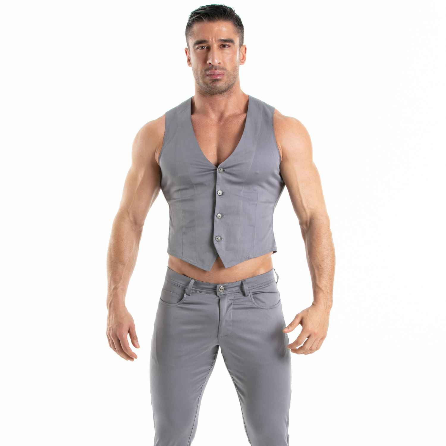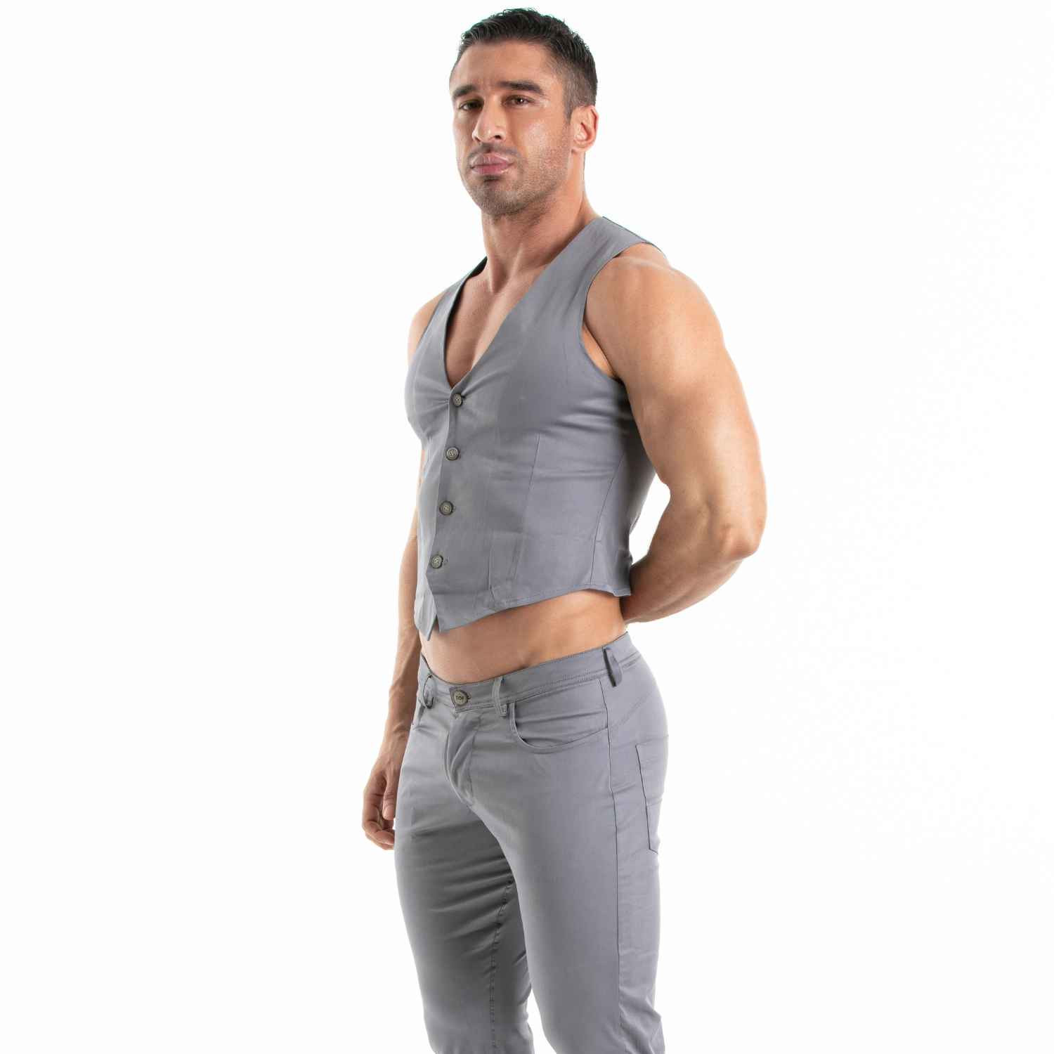 “The men's chino vest is a must-have for any modern wardrobe. Its stretch fabric offers absolute comfort, while its slim fit enhances any body type. It pairs effortlessly with a men's tank top or a sleeveless bamboo hoodie. A versatile and stylish piece.”