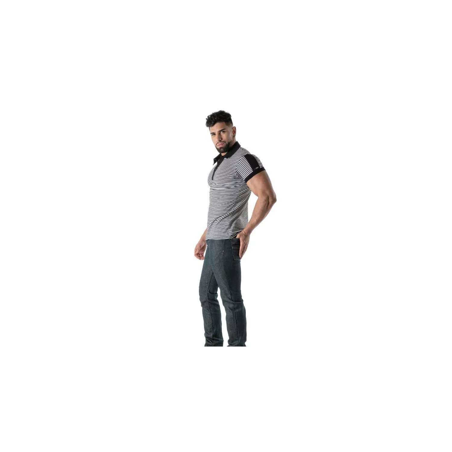 Discover the navy blue stripe polo, an iconic piece crafted for those who seek to blend elegance with boldness. Designed by Casual 2026, this polo epitomizes the perfect balance between relaxed style and sophisticated attitude. Made in France with meticulous care, it presents a silhouette that commands attention. Its cotton-elastane fabric provides unrivaled softness while ensuring maximum comfort. The fit, available from S to XL, caters to all body types, emphasizing masculinity and confidence. The signature TOF button detail and embroidered logo on the sleeve add refined touches, transforming this polo into a must-have for the bold man. Whether for casual outings or evening gatherings, this piece asserts your attitude with class and sensuality. Explore more from our collection of casual clothes and let your style speak volumes.