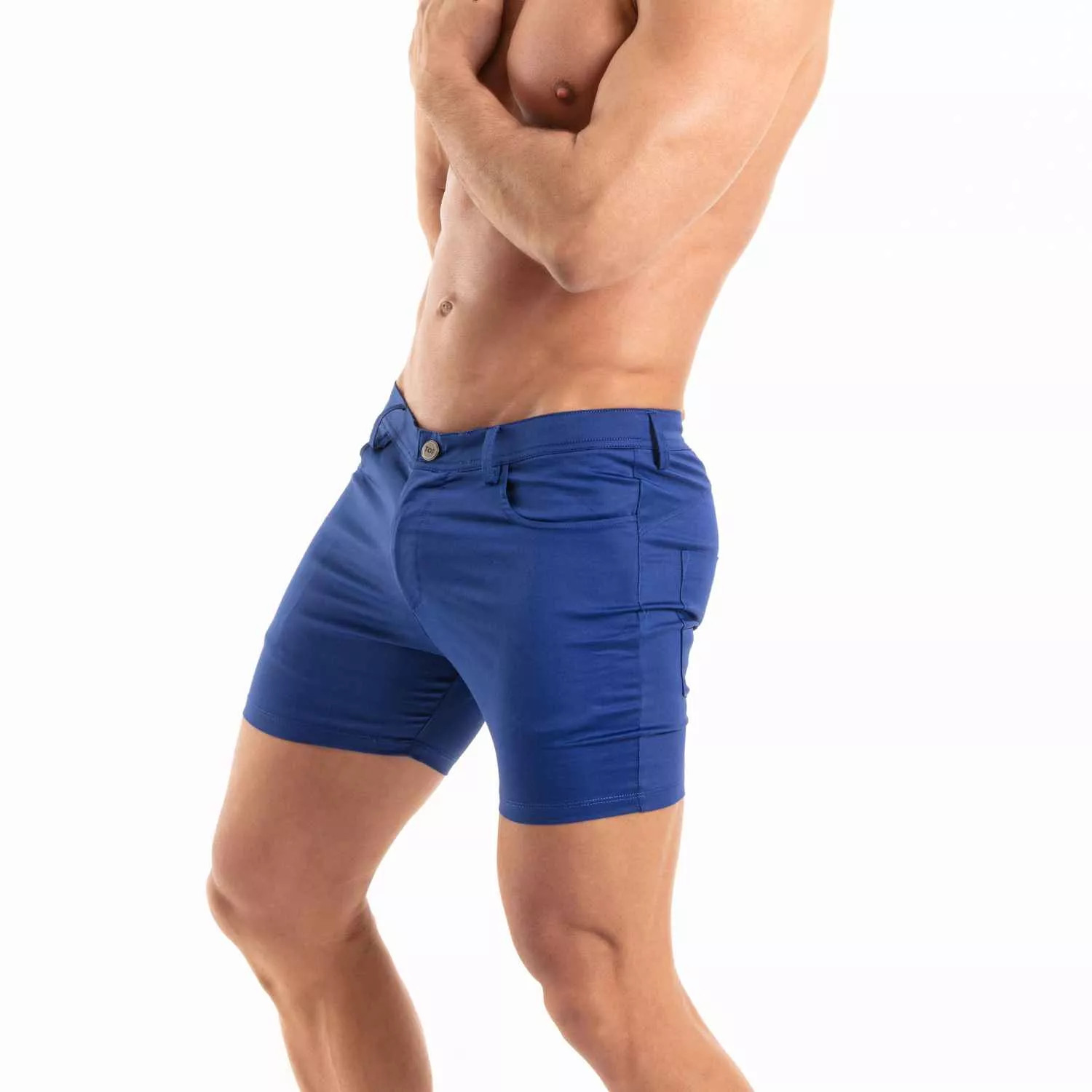 "The TOF Paris chino short is much more than just a men's short short. it combines style, comfort, and quality. its slim fit and stretch fabric make it the perfect companion for sunny days. personally, i love wearing it with a men's sports tank top for a casual yet sexy look. it's an essential piece for every man's wardrobe."