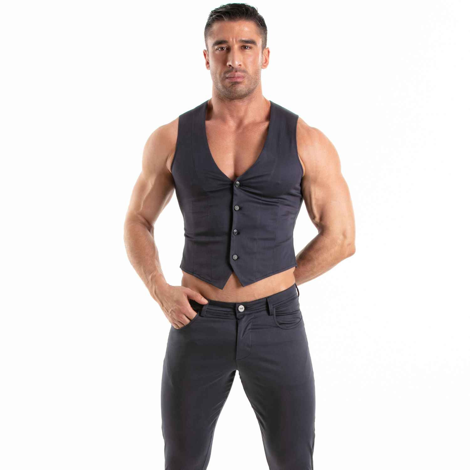 “The men's chino vest is a must-have for any modern wardrobe. Its stretch fabric offers absolute comfort, while its slim fit enhances any body type. It pairs effortlessly with a men's tank top or a sleeveless bamboo hoodie. A versatile and stylish piece.”
