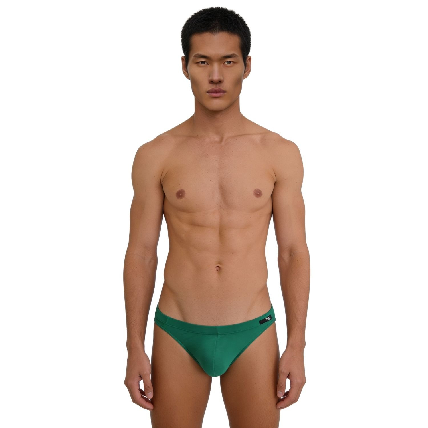 The Mood green bikini is a mini brief designed to reveal your silhouette with sensual simplicity. Its unlined front pouch provides natural ease and a lightweight feel, while the TOF Paris logo sewn at the waist asserts a chic French signature. Designed and sewn in Paris, it blends elegance and functionality for those who want a piece that is both sexy and refined.