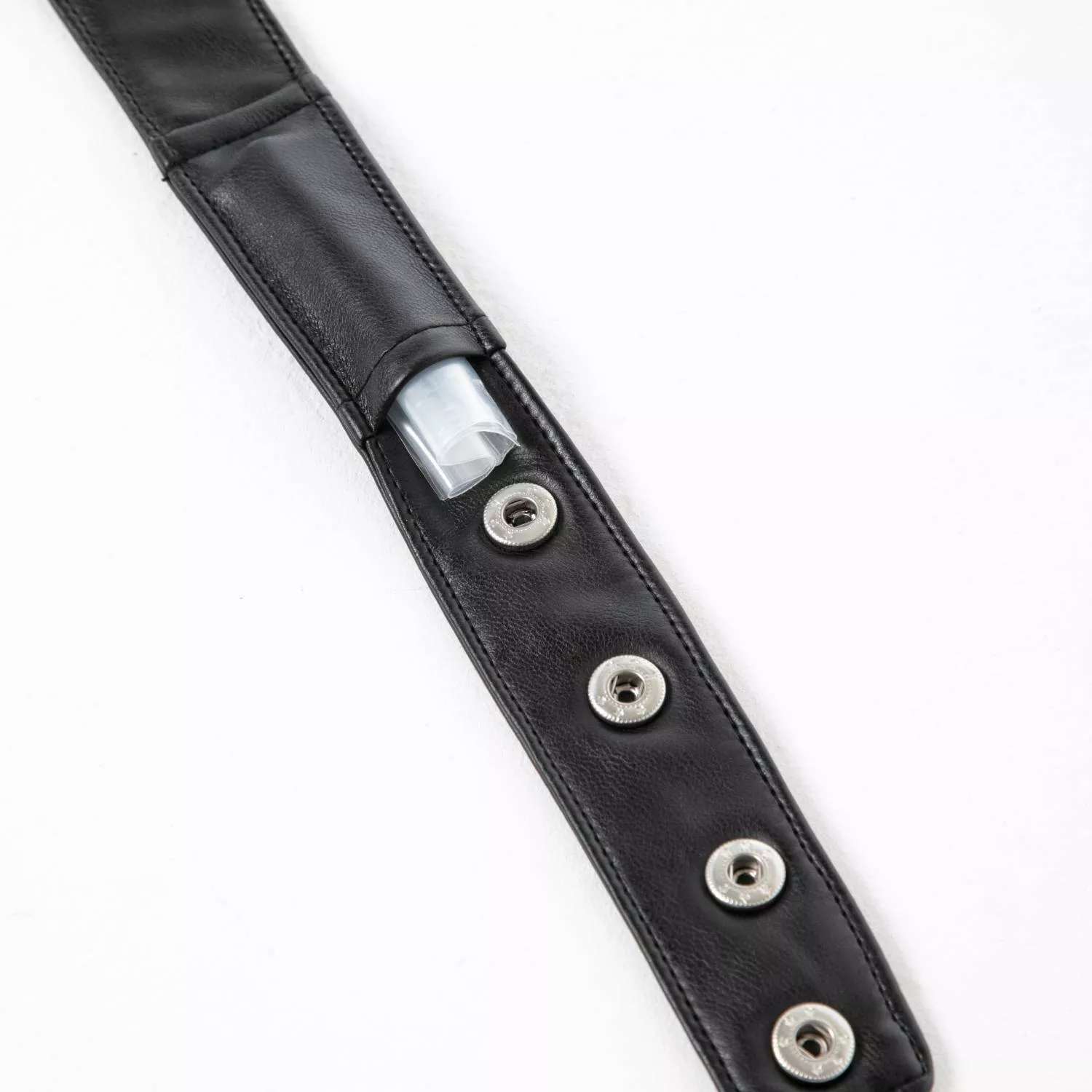 The kinky pocket collar is a standout piece in the world of men’s lingerie and fetish accessories. Made from leather-look material, it makes a bold visual statement while maintaining a discreet, refined finish. With an adjustable neck fit and a hidden inner pocket, it’s packed with thoughtful, provocative details.