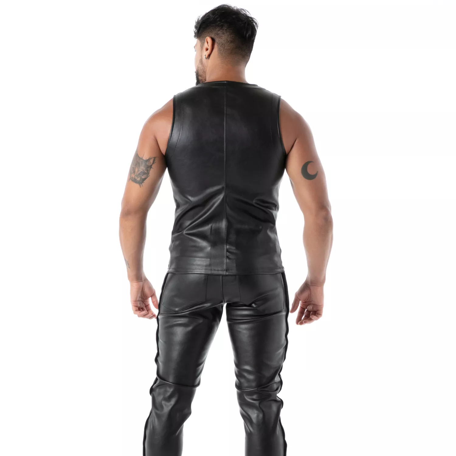 For a complete look, you can pair it with fetish underwear, a jockstrap, faux-leather pants, or slim jeans. For a 100% clubwear style, match it with the coordinated vinyl zipped push-up boxer.