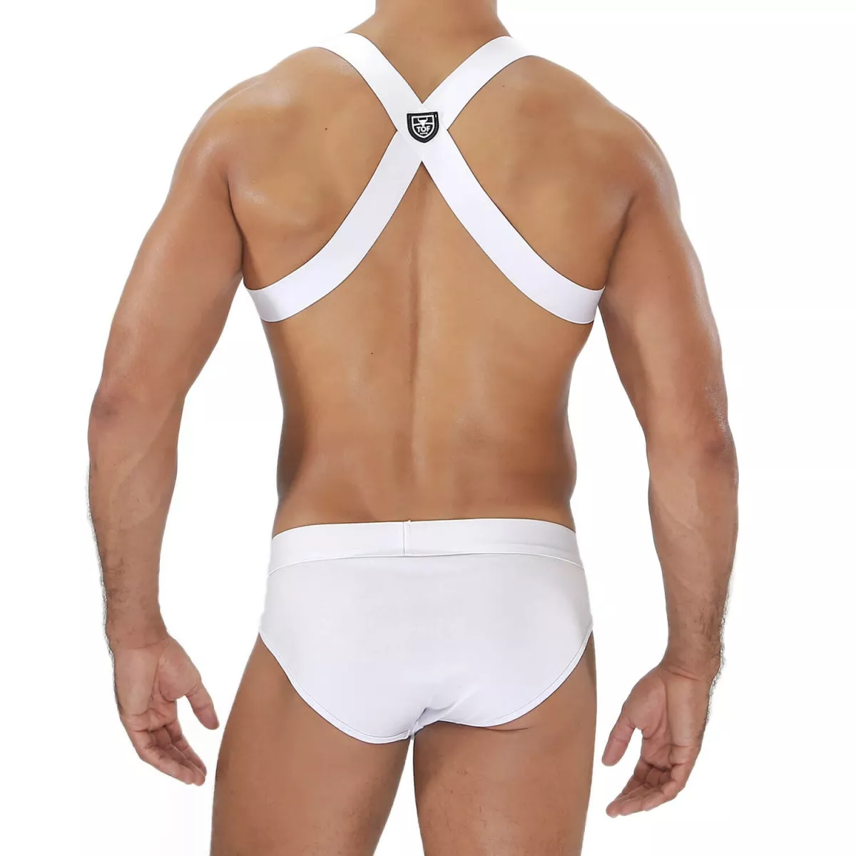 "The white party boy elastic harness is essential for those who want to combine trendiness with comfort. Its superior craftsmanship and design, tailored for the gay lifestyle, make it a staple for any respectable wardrobe."