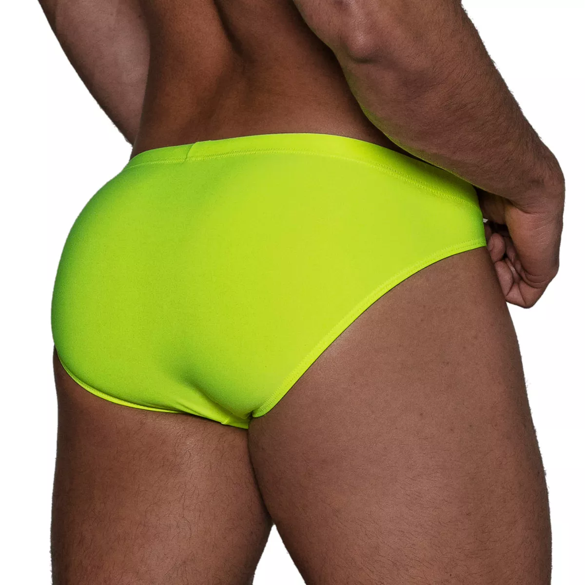 “The neon mini swim brief is a standout piece for those who love to make a statement. Its durable material and minimalist cut make it perfect for a summer of comfort and style. A great addition to your swimwear collection.”