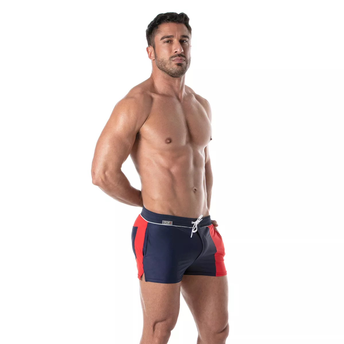 Summer’s heating up… in style! Dare to embrace sexy elegance with the holidays swim shorts by TOF Paris. Available in a solid color or an asymmetrical design with contrast stripes, these mid-thigh shorts highlight an athletic, masculine silhouette. Crafted from polyamide and elastane, they hug the body while offering exceptional freedom of movement.