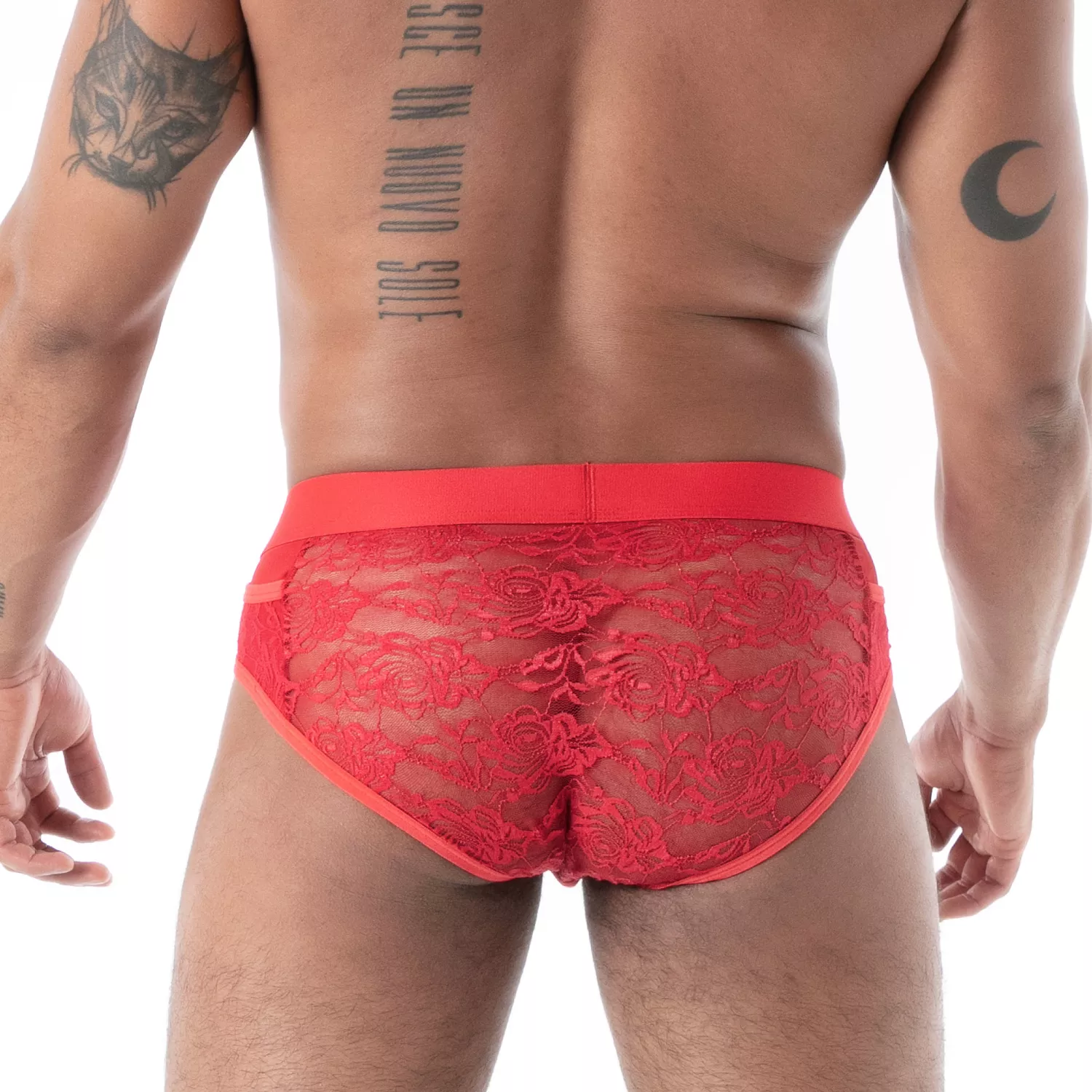 "From our entire collection, these lace pocket briefs are one of my personal favorites. They blend boldness, elegance, and comfort three qualities rarely found together. The stretch polyamide lace offers slight transparency without sacrificing support, and the side pockets bring in an unexpected playful touch. I’ve paid special attention to the cut so that the briefs enhance the male form without unsightly creases. Finally, the Parisian craftsmanship and flawless finishing make this a piece worthy of the TOF Paris universe."