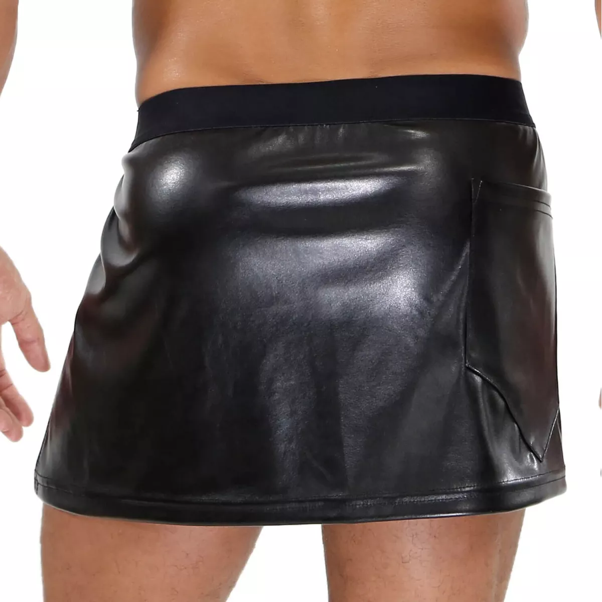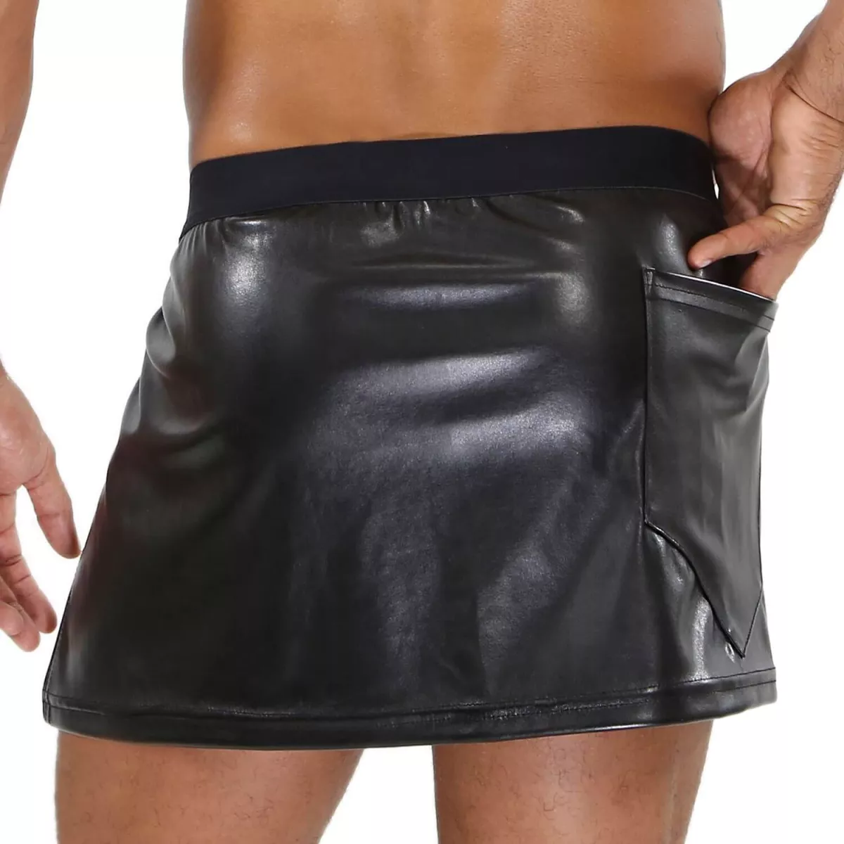 This men’s skirt is actually more of a realistic imitation leather microfibre sarong. With its fetish style, the press-studs on this masculine skirt make it easy to put on and take off. Very sexy men’s loincloth effect.