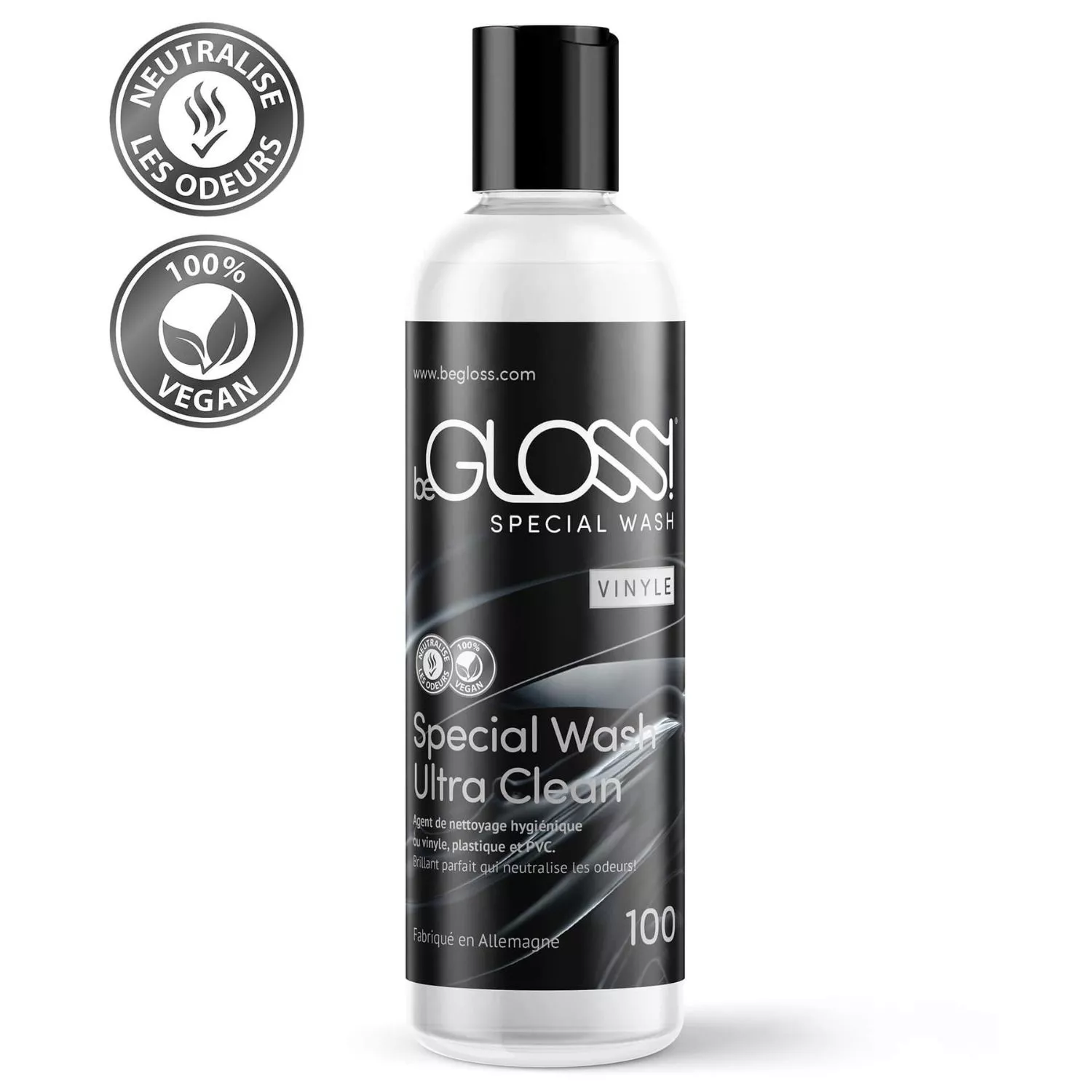 Unleash bold, glossy vinyl and PVC with GLOSS’s Vinyl Cleaner Special Wash. Crafted in Germany, it removes dirt and odors while protecting your daring, seductive outfits.