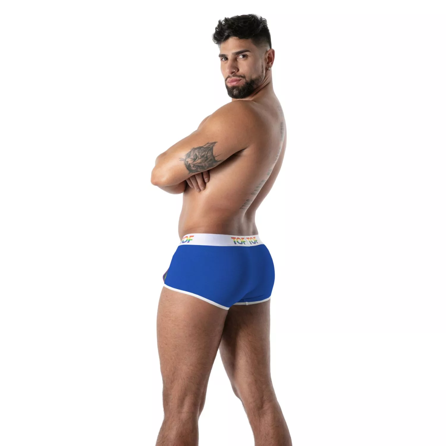 Découvrez le boxer pride joyful bleu de TOF Paris, une pièce iconique pensée pour les hommes qui assument leur charme et leurs couleurs. Conçu pour sublimer la silhouette, ce boxer court en coton élasthanne offre une douceur exceptionnelle et un maintien parfait. Sa belle poche frontale met les formes en valeur, tandis que sa bande latérale arc-en-ciel permet d’accrocher facilement un débardeur ou un t-shirt pour un look stylé, assumé et vibrant.