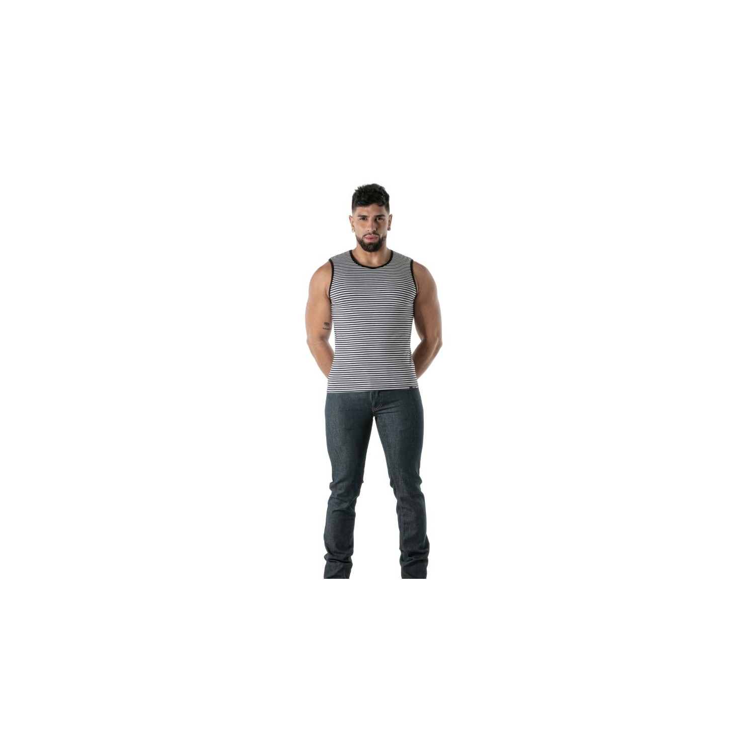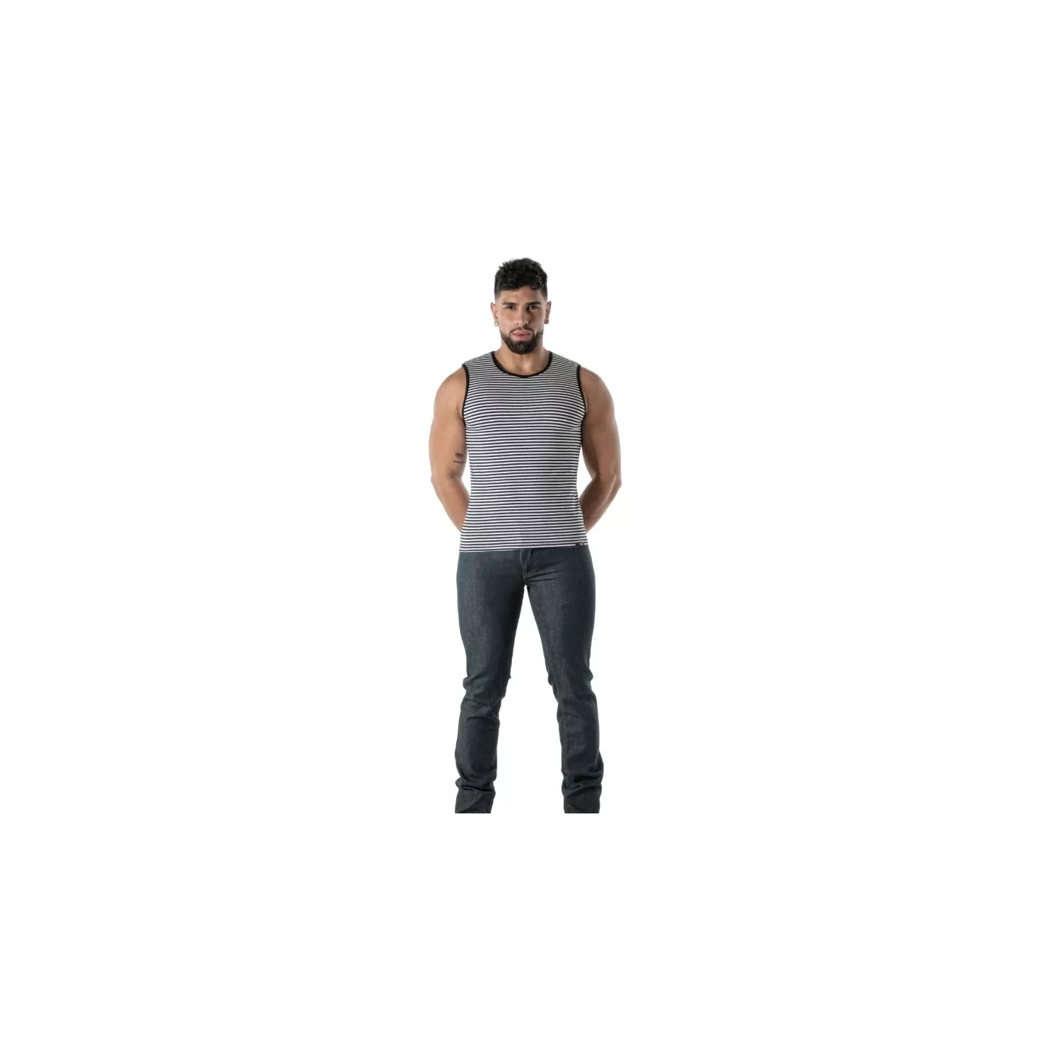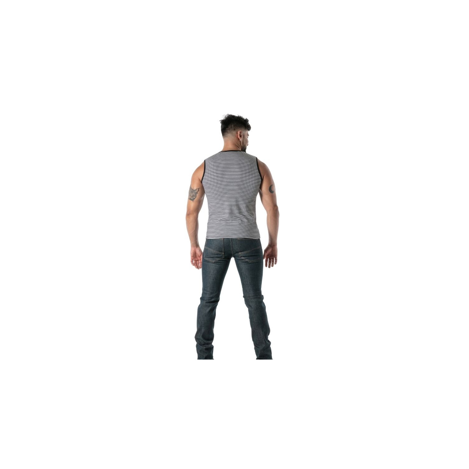 Ce débardeur noir à rayures s’adresse à l’homme moderne, audacieux, qui souhaite exprimer sa confiance à travers une pièce à la fois sexy et élégante. Que vous soyez un passionné de mode casual, un amateur de pantalons homme ou un adepte de looks plus audacieux, cette pièce s’adapte à votre style. Il est idéal pour ceux qui refusent la banalité, recherchant une allure qui ne passe pas inaperçue tout en restant confortable. Parfait pour les amateurs de shorts casual homme, il complète une garde-robe tournée vers la liberté d’expression et la mode intemporelle.