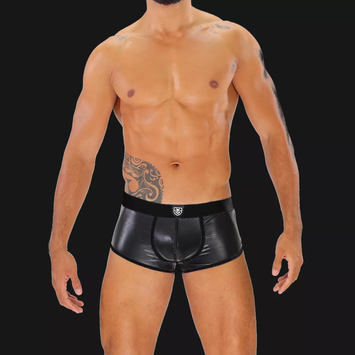 Associez ce boxer à d’autres pièces de sous-vêtements cuir homme ou à des accessoires comme un harnais cuir homme pour un look complet.