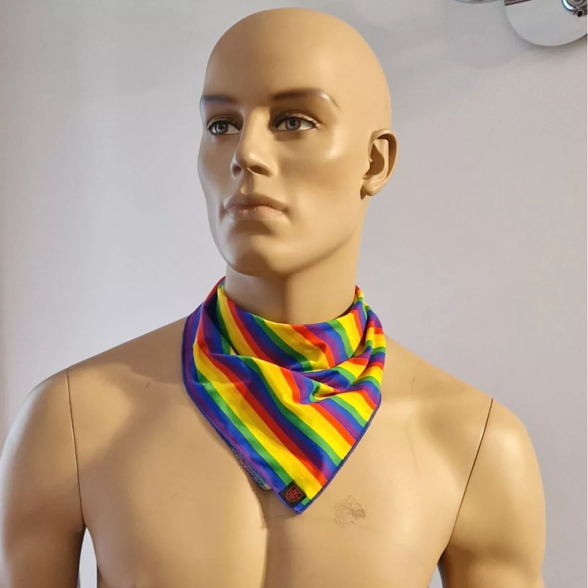 Ce bandana est fait pour tous ceux qui souhaitent ajouter une touche de couleur et d'audace à leur look. Il est particulièrement apprécié par la communauté LGBTQ+ pour son design inclusif, mais convient également à ceux qui aiment expérimenter des tenues de soirée ou des vêtements fetish. Complétez votre look avec des mini slips de bain homme ou un harnais d'épaule Rainbow pour un ensemble harmonieux.