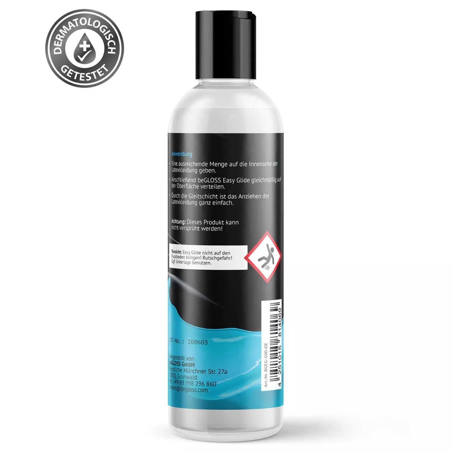 Ce produit, fabriqué en Allemagne, allie expertise et savoir-faire français, pour vous offrir une expérience de luxe accessible. Sa formule économique, d’un volume de 3.4 FL OZ / 100 ML, vous accompagnera dans toutes vos aventures sensuelles, en toute discrétion et efficacité.