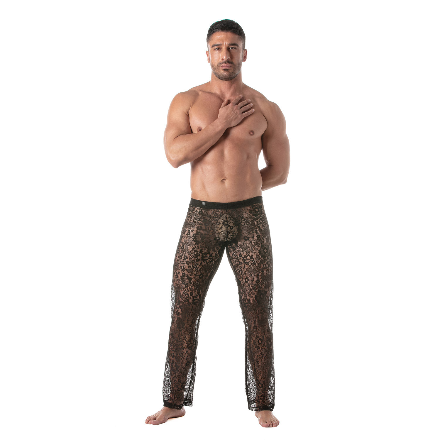 Le Pantalon Kimono en Dentelle est confectionné dans une dentelle à motif floral de haute qualité, légèrement stretch pour assurer une liberté de mouvement totale. La coupe ajustée et la taille basse offrent un confort inégalé tout en mettant en valeur la silhouette masculine. Cette fusion entre confort et style fait de ce pantalon une pièce exceptionnelle dans la mode masculine sexy.