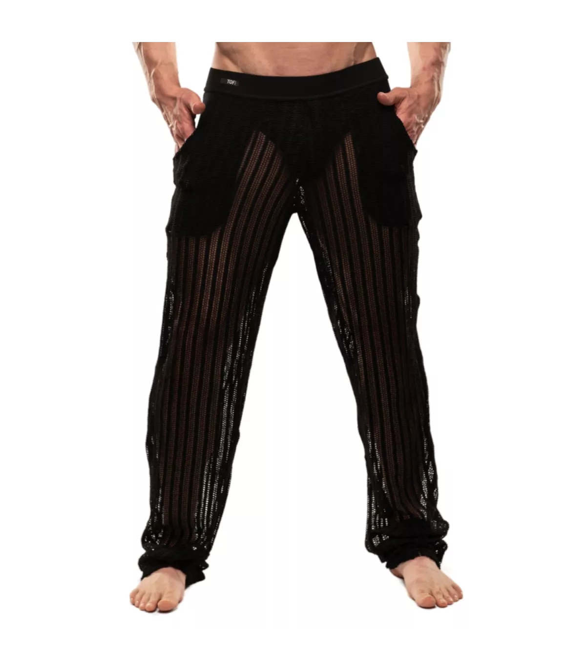 Pantalon d'été ajouré- taille basse coupe évasée- deux grandes poches à l'avant- Ceinture et poches en bord-côte-Logo TOF Paris cous à la taille- Conçu et cousu à Paris.