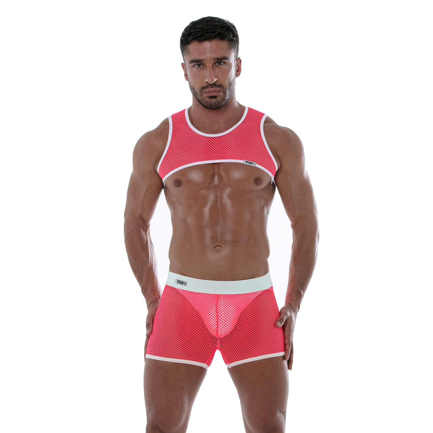 Ce shorty est conçu pour l'homme qui ne craint pas d'afficher un look audacieux. Que vous soyez à la recherche de vêtements sexy pour hommes, de fetishwear tendance ou simplement d'un accessoire de mode gay-friendly pour compléter votre garde-robe, le Neon Mesh Shorts est fait pour vous.