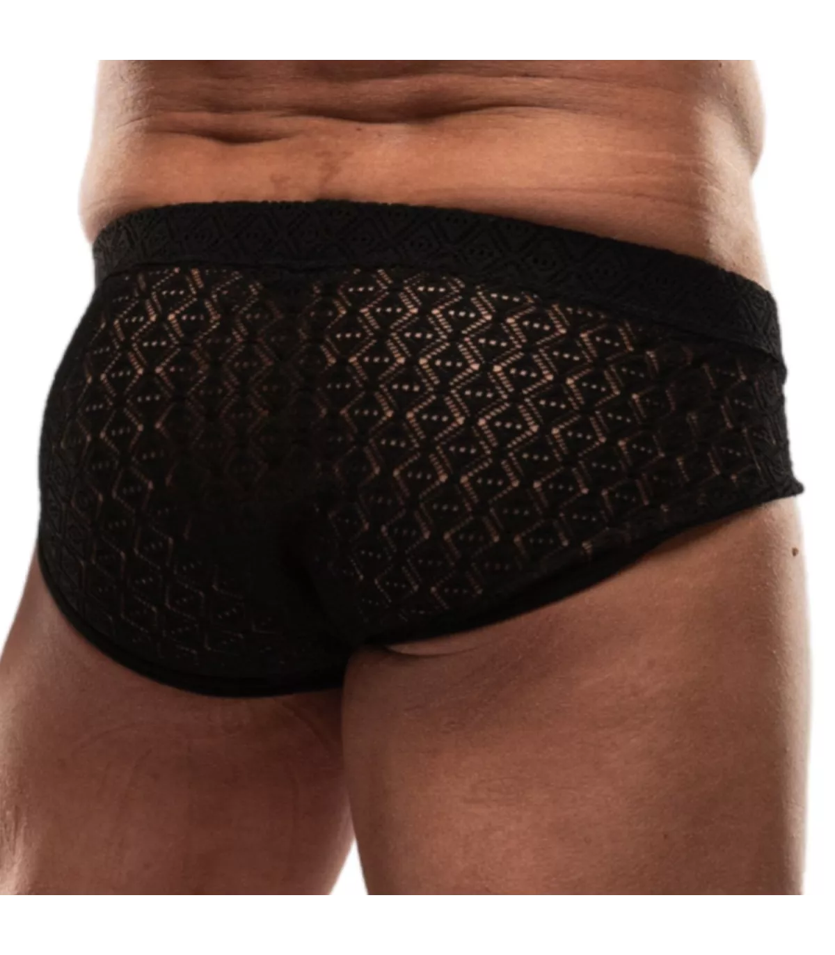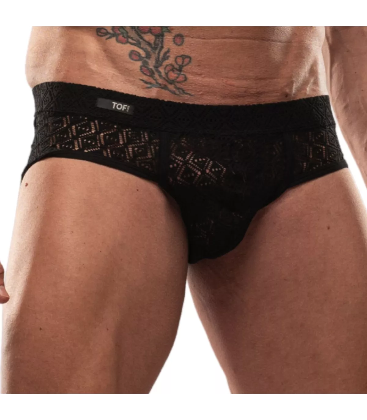 Slip en dentelle stretch taille basse coupe ajustée-Poche frontale non doublée-Logo TOF Paris cousu à la taille- Conçu et cousu à Paris.