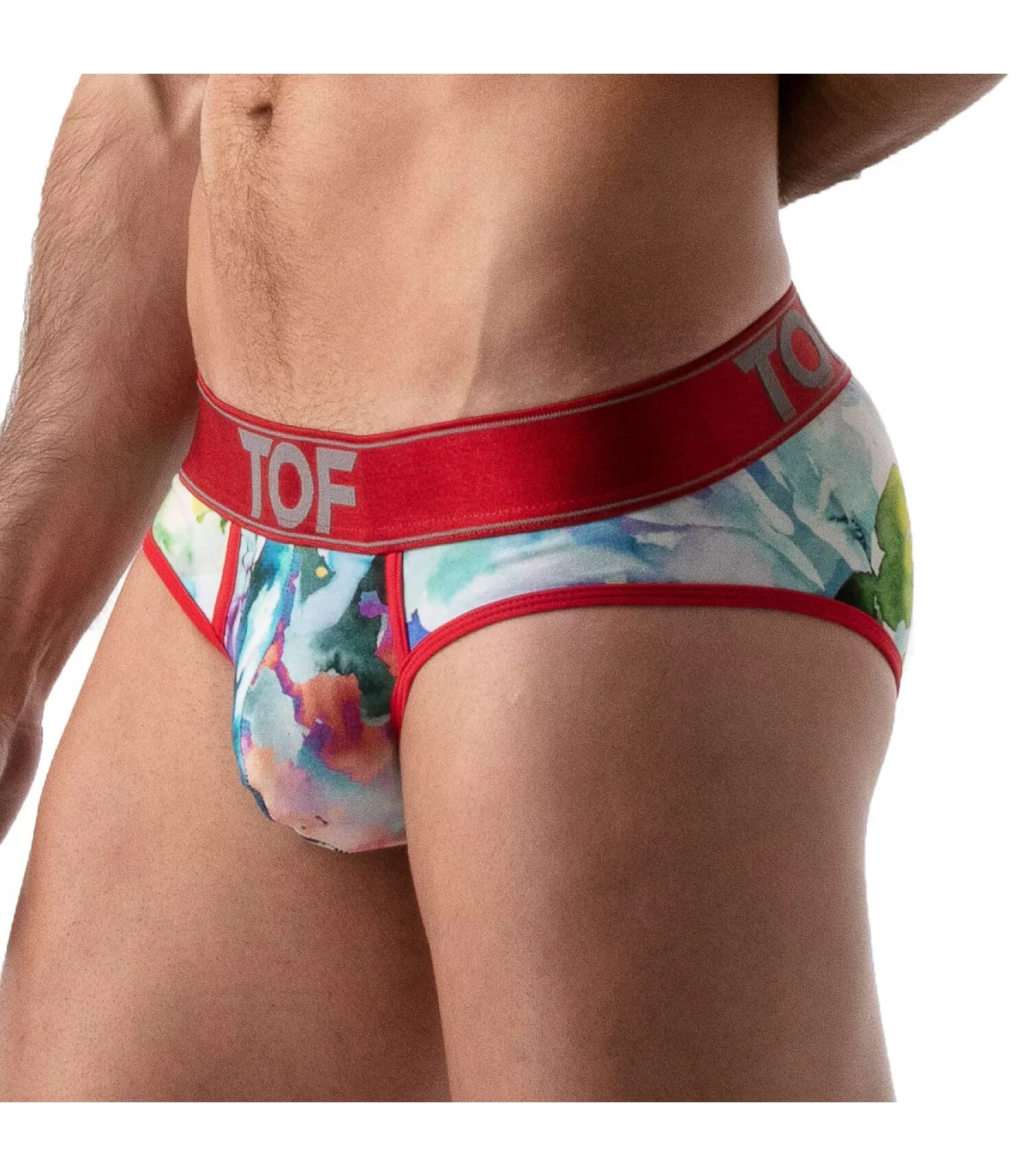 Le slip échancré aux couleurs chatoyantes qui fait un beau paquet.