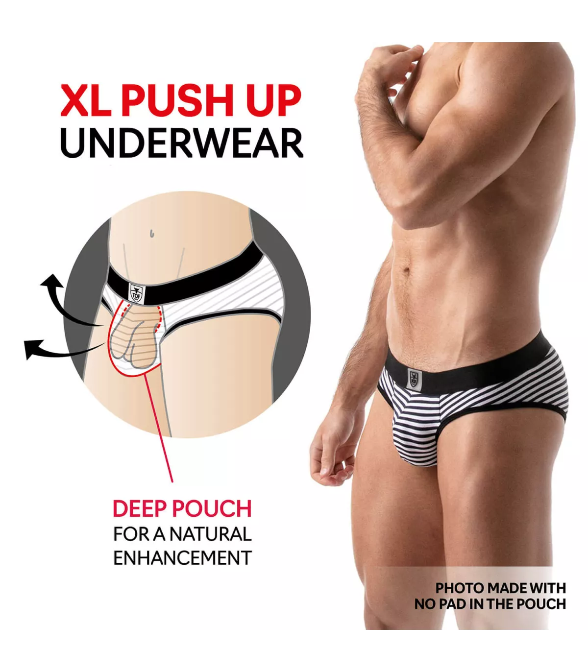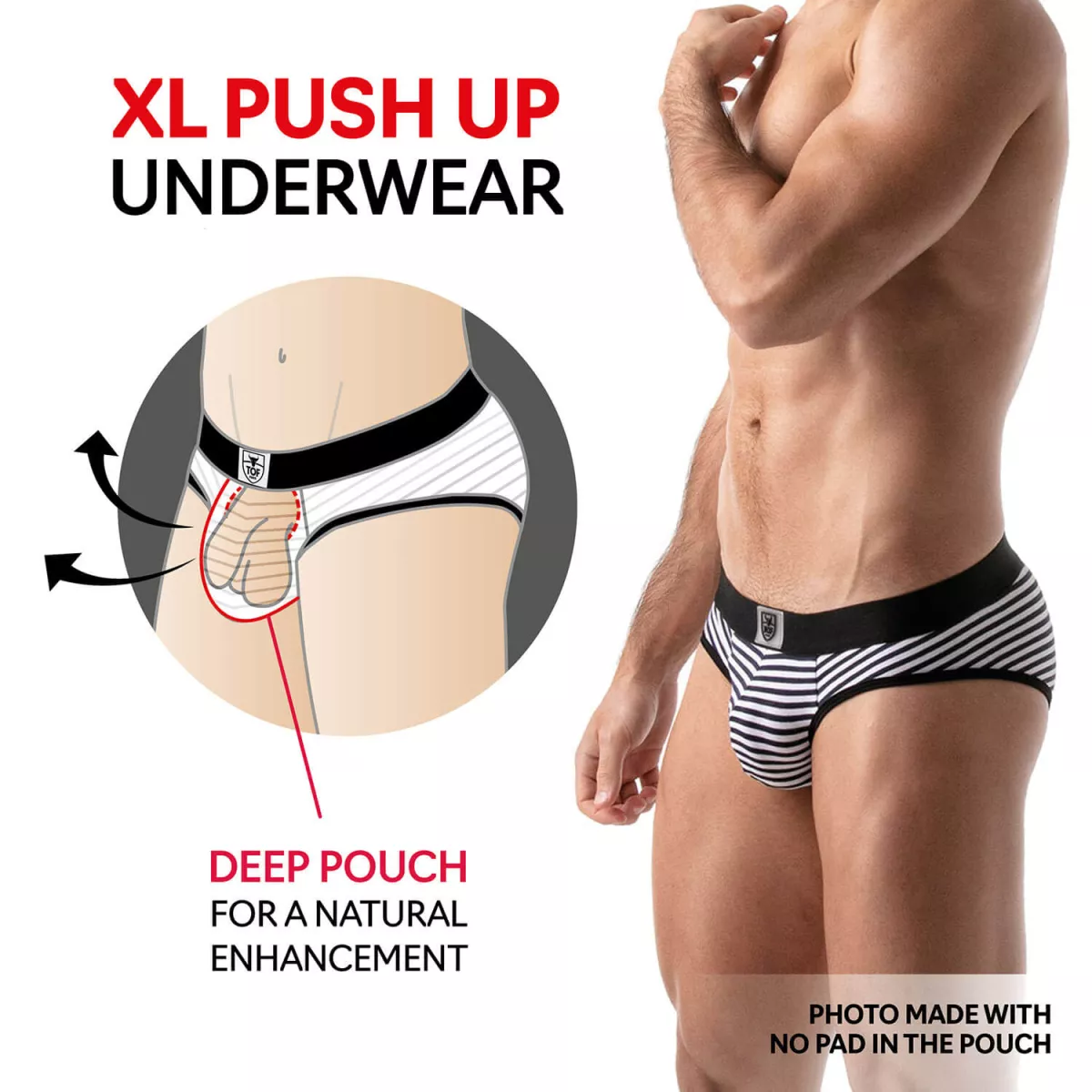 - Poche frontale doublée avec effet push up grâce à la fine bande élastique incorporée
