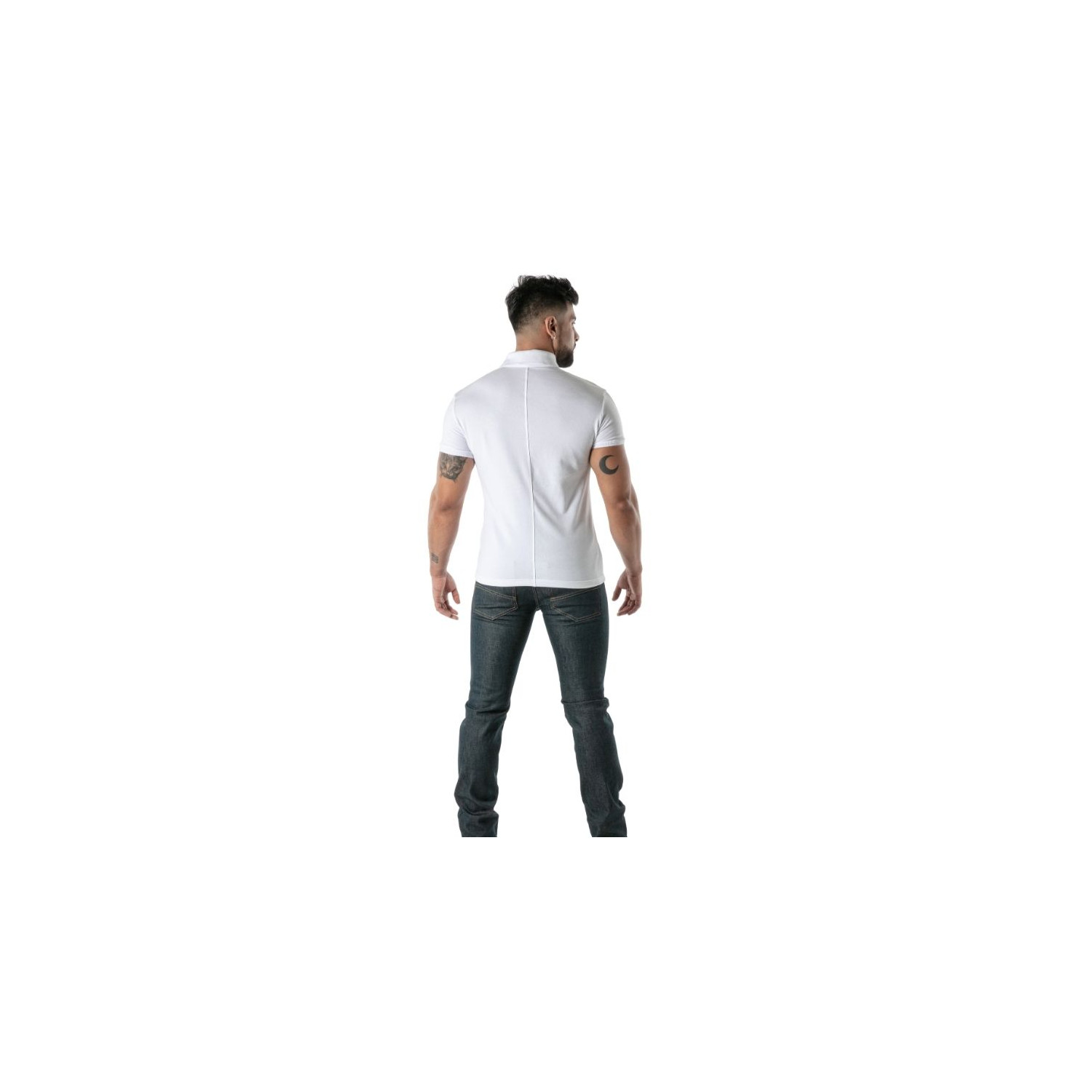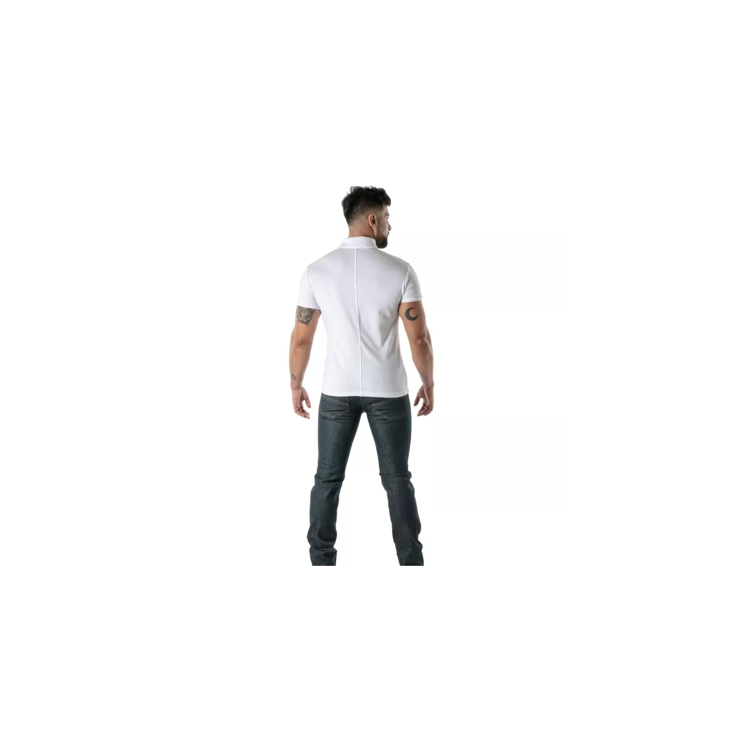 Ce polo coton doux blanc s’adresse à ceux qui veulent exprimer leur attitude sans compromis, que ce soit dans la rue, en club ou lors d’un rendez-vous. Idéal pour les hommes qui cherchent à explorer leur sensualité avec une pièce à la fois sexy et élégante. Si vous souhaitez own your image et ne pas passer inaperçu, ce polo est votre allié. Son style casual mais affirmé permet de dare tout en restant chic. C’est la pièce parfaite pour ceux qui refusent la banalité et veulent créer une silhouette iconique, à la fois fétichiste et raffinée.