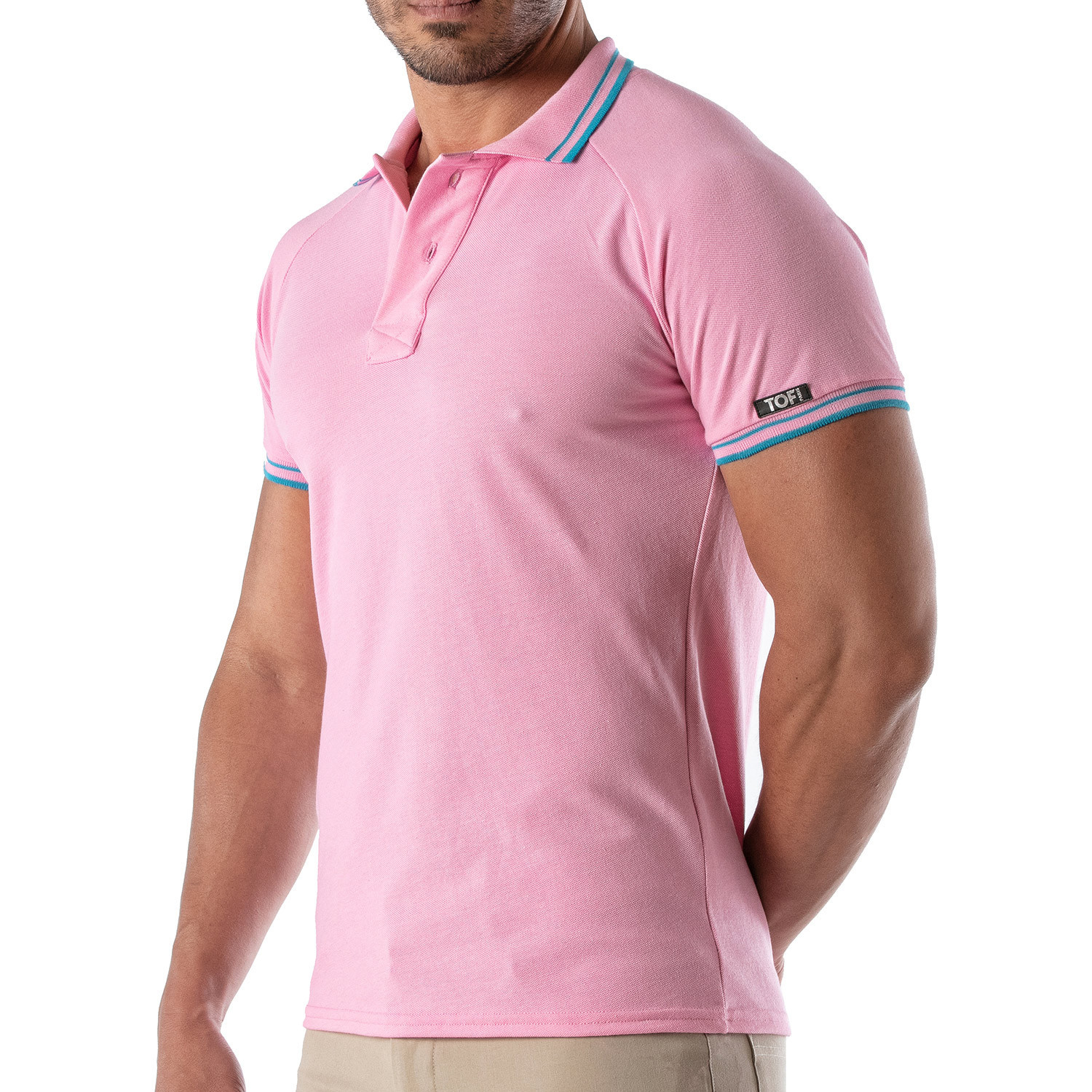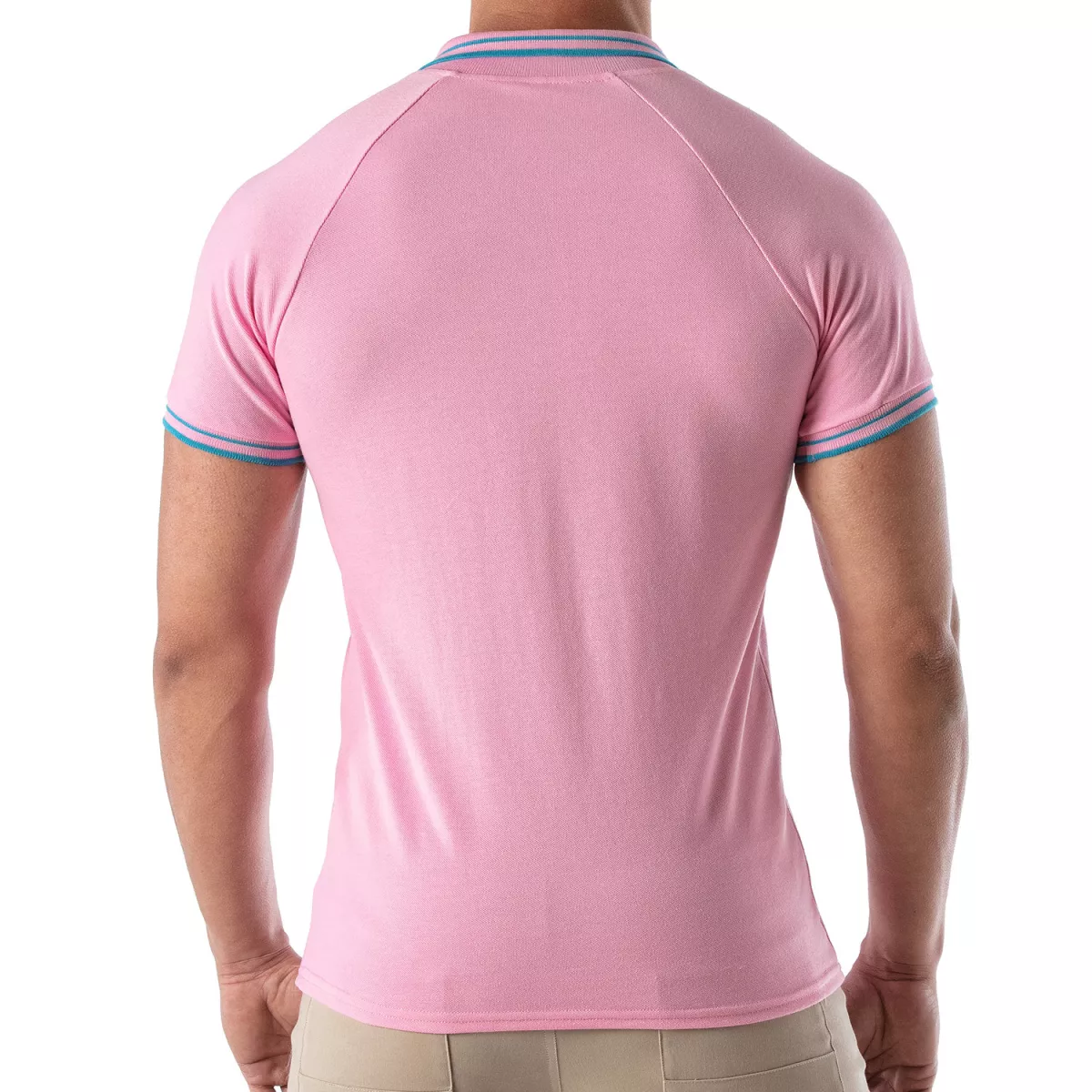 Polo à manches raglan en piqué de coton et aux bandes contrastées