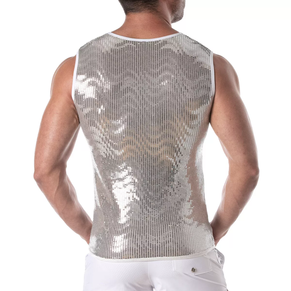 Débardeur à paillettes argent pour hommes Débardeur à paillettes argent pour hommes Débardeur à paillettes argent pour hommes