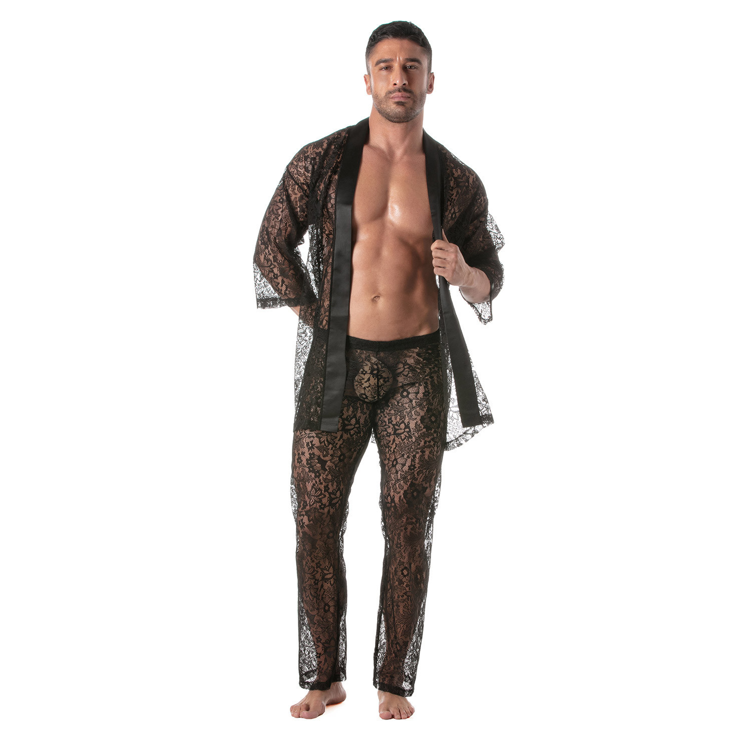 Ce gilet kimono en dentelle n'est pas seulement un vêtement, c'est un accessoire de mode indispensable pour tout homme qui se respecte et qui souhaite exprimer son individualité avec élégance et audace.